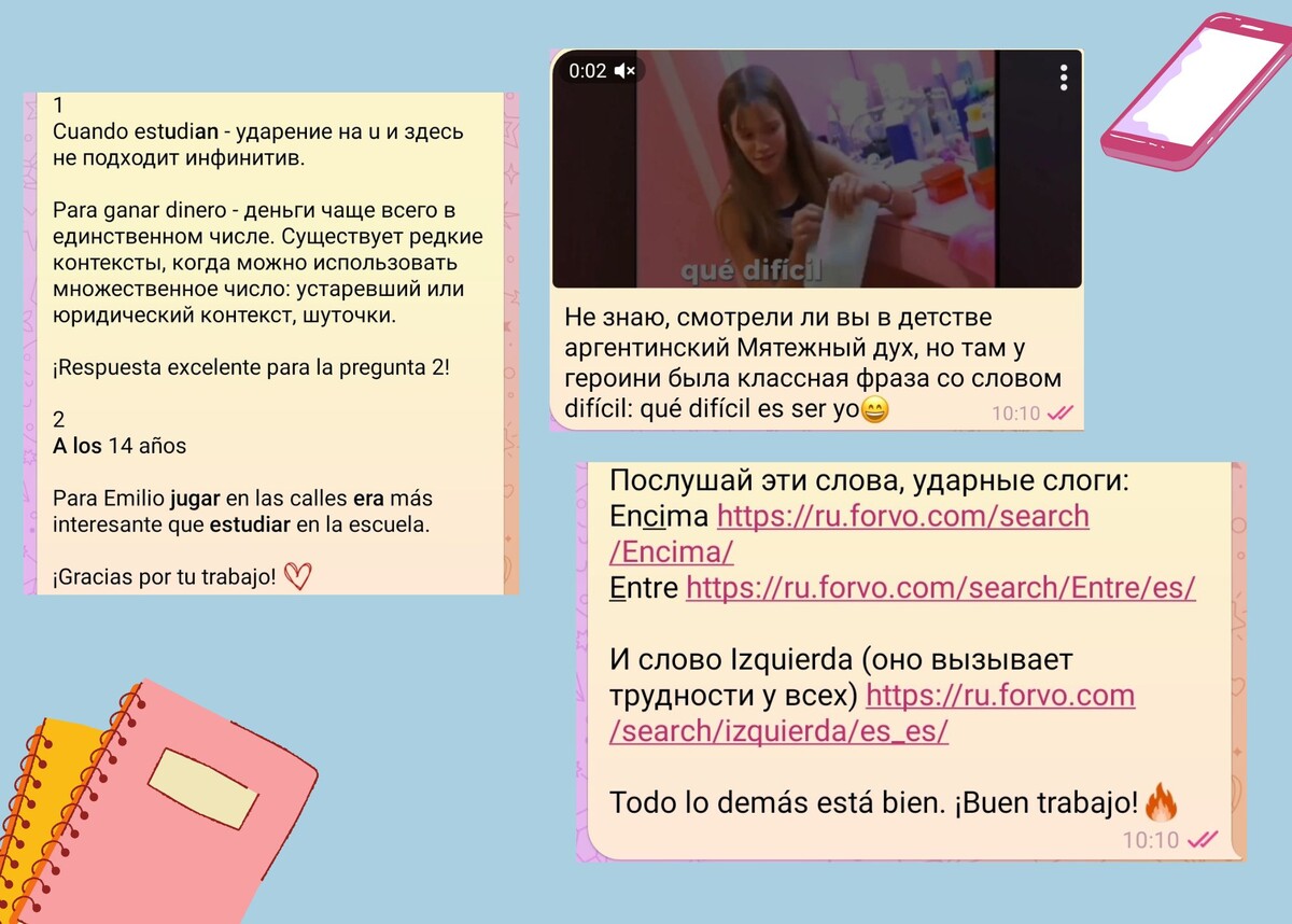 С ученицами мы обычно на связи 4-6 раз в неделю. Мы переписываемся, обсуждаем задания, вопросы и маленькие победы⭐️