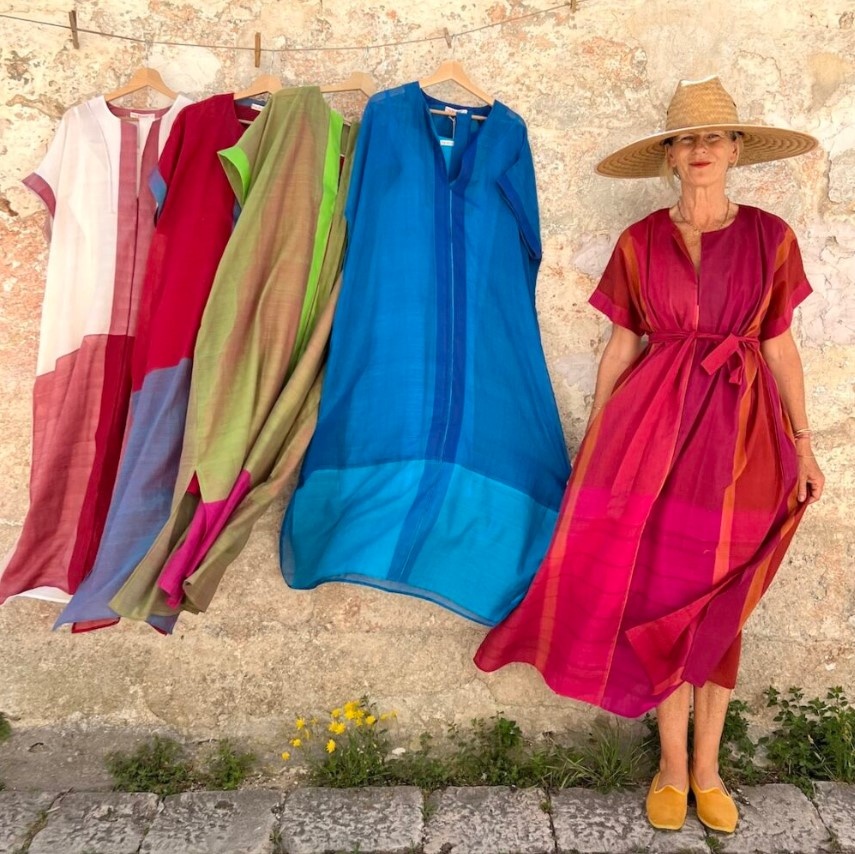Хочу познакомить вас с Деборай Нолан из маленького итальянского поселка Саленто, расположенного на самом юге Италии, на берегу Средиземного моря. Всю свою жизнь Дебора собирала и закупала ткани и одежду по всему свету. Много лет она вела кочевой образ жизни между Индией, Южной Америкой, Нью-Мексико, пока ни нашла постоянный дом в небольшой деревне в Саленто, мирном и отдаленном месте, где смогла растить своих детей в тихой и изобильной среде. Ее магазинчик «Tulsishop» родился в том, что раньше было ее кухней, когда она решила снести стену и превратить фасад своего дома в небольшой магазин. В начале это был просто эксперимент, и, честно говоря, она сомневалась, что из этого что-то получится. Но постепенно люди начали приходить-покупать, и она увидела, что ее необычное сочетание одежды и ремесел понравилось большинству, что очень воодушевило ее. Когда ее дети выросли и разлетелись по стране, Дебора снова начала много путешествовать, исследуя новые территории, всегда движимая и вдохновляе