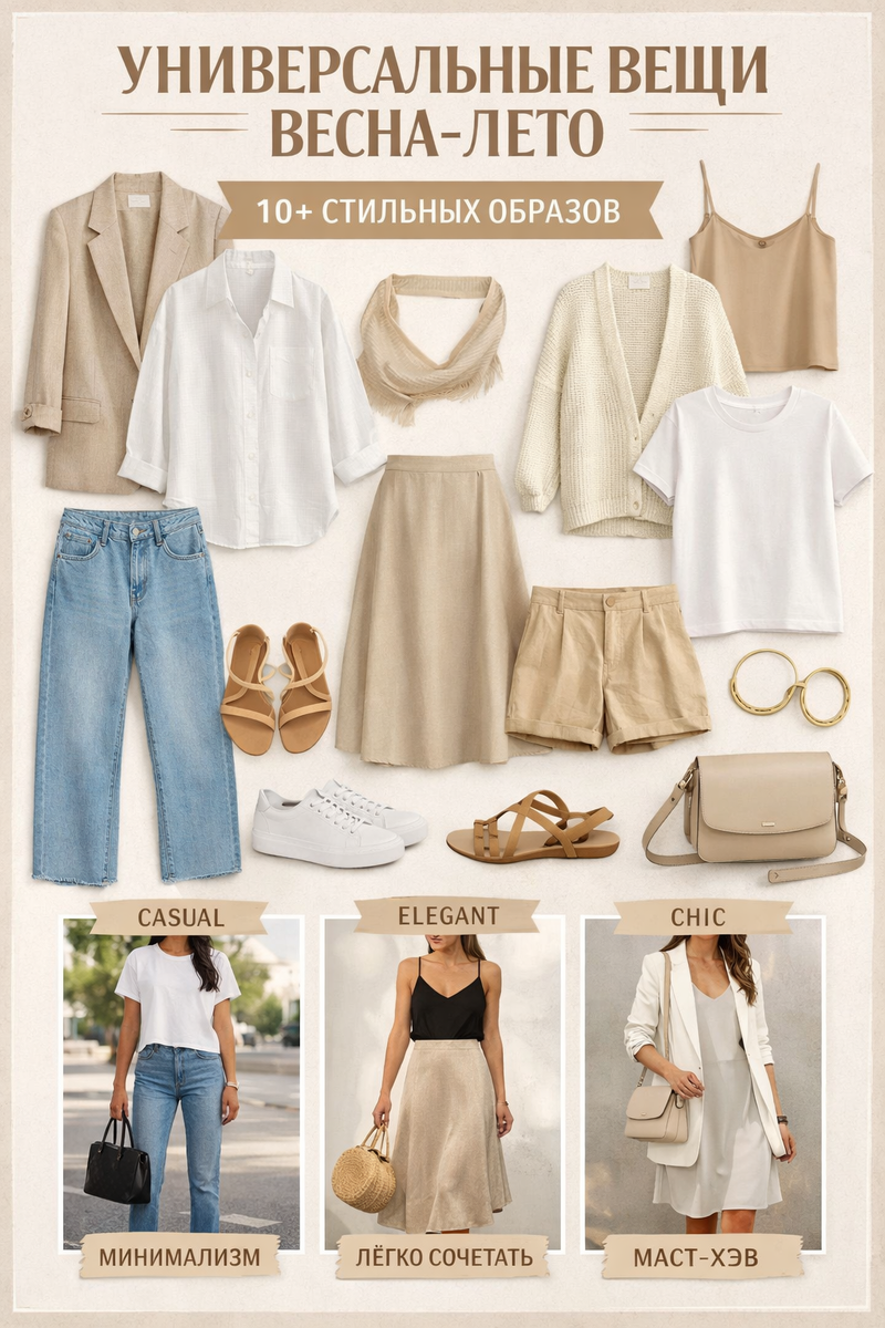 Универсальные вещи для женщин весна-лето — собери капсульный гардероб и создай 10+ стильных образов с трендовыми сочетаниями. Если ты хочешь выглядеть стильно каждый день без лишних усилий, тебе точно нужен универсальные вещи для женщин весна-лето гардероб. Это не просто тренд — это способ собрать идеальную капсулу, где каждая вещь работает на тебя. В этой статье ты найдёшь: