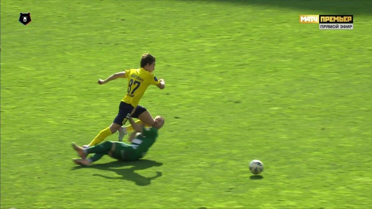 Игрок «Ахмата» Мирослав Богосавац лежит на газоне без сознания