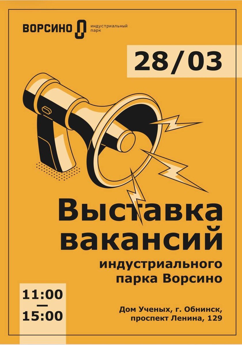 » 28 марта Индустриальный парк «Ворсино» проведёт в Обнинске выставку вакансий. Участникам выставки будет представлены вакансии от лидеров региона: Грайф Россия, АстраЗенека Индастриз, Ламинам Рус, Архбум тиссью групп и другие. Выставка вакансий – это: - прямое общение с представителями работодателя - полная информация о вакансиях, уровне зарплаты и условиях труда - шанс получить контакты работодателя и оставить своё резюме Рассматриваются соискатели с разным уровнем образования и опытом работы. Соискателей ждут с 11:00 до 15:00 в Доме учёных (пр. Ленина, 129).