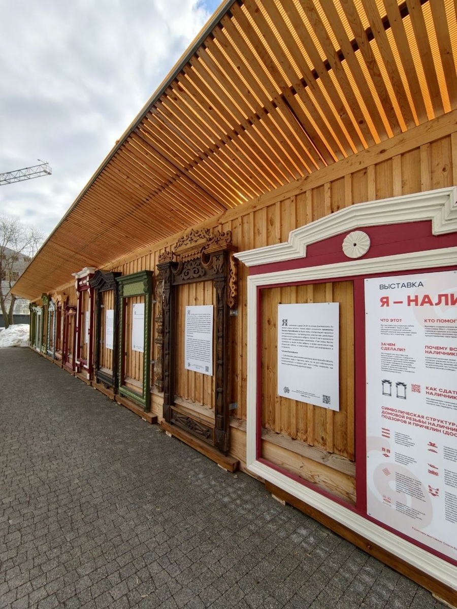 На фото Сквер Казанские Наличники, где представлена выставка Я наличник, в рамках которой представлены экспонаты разных домов Казани. Локация: https://kazanlife.com/locations/974-muzei-pod-otkrytym-nebom-okonnye-nalichniki-v-ramkah-vystavki-tom-soier-na-ulice-gruzdeva.html Карта локаций Казани! kazanlife.com