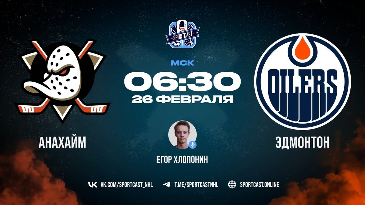 🏒 Анахайм Дакс против Эдмонтон Ойлерз 🏒 (начало в 06:30 по московскому времени).