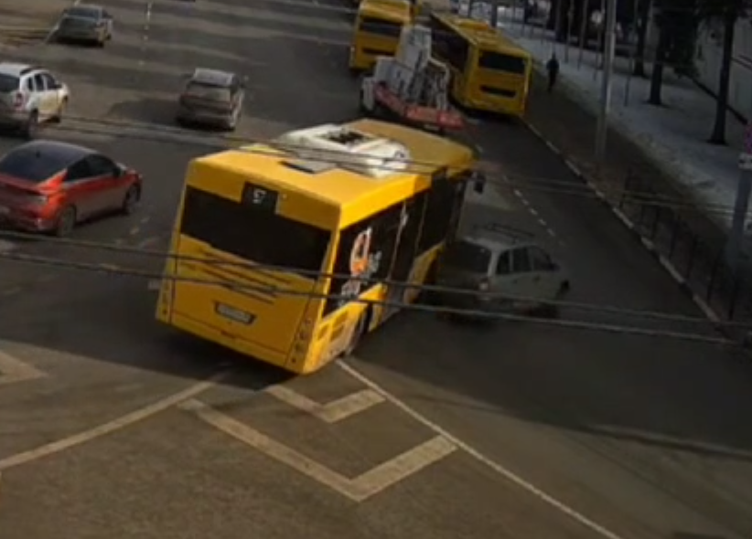 Момент запечатлели камеры системы «Безопасный регион». Авария имело место 20 марта на Богоявленской площади. В 10:56 «Яавтобус» выезжал с круга, когда в него влетела легковая машина. На кадрах видно, что перед столкновением водитель попытался затормозить — машину занесло и об автобус она ударилась боком. Остаётся добавить, что, согласно данным правоохранителей, в ДТП пострадала только сама техника. Как видно на фотографиях, сделанных очевидцами, у легковой машины серьёзно подбита правое заднее крыло и бампер. Также немного ушёл в сторону багажник.