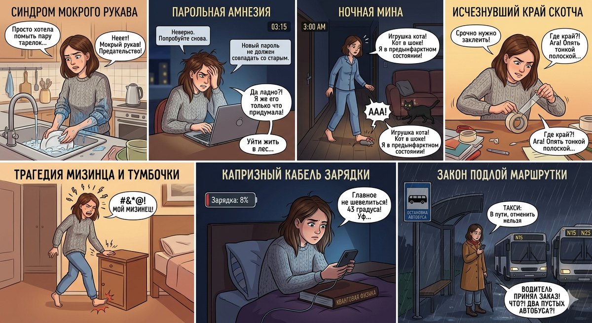 Я просто хотела вымыть пару тарелок или умыться перед сном. Но вода вдруг принимает предательское решение стечь по моему предплечью прямо под рукав любимого уютного свитера. Мерзко, холодно, и ощущение такое, будто меня предали законы физики.