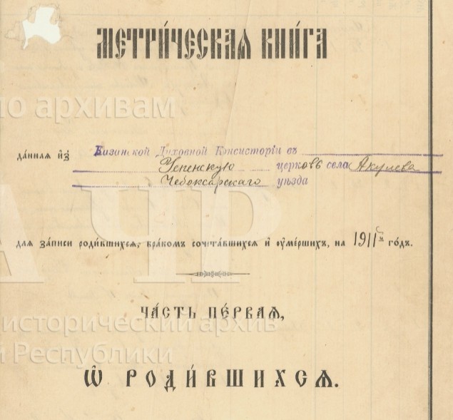 Село Акулево. Метрическая книга о бракосочетавшихся за 1904-1917 гг. ГИА Чувашской Республики (ГИА ЧР), фонд № 557, опись № 8, дело № 23, стр. 126 скан. Метрическая книга, данная из Казанской Духовной Консистории в Успенскую церковь села Акулева Чебоксарского уезда, для записи родившихся, браком сочетавшихся и умерших на 1911 год. Часть вторая. О бракосочетавшихся. Стр. 130 скан. Май. № 9. 30 числа. Жених: умершего крестьянина деревни Челкасов Сергия Александрова сын Константин Сергеев, православного вероисповедания, первым браком. 24 лет. Невеста: Крестьянина деревни Банновой Самуила Васильева дочь Елизавета Самуилова, православного вероисповедания, первым браком. 22 лет. Поручители: по женихе: крестьяне деревни Ердовой Михаил Иванов и деревни Василькасов Николай Тимрофеев. По невесте: деревни Ольдеевой Анисим Семенов и титулярный советник Сергей Иванов Виноградов. Таинство венчания совершил священник Евгений Воинов. Диакон Александр Орлов. Псаломщик Петр Киприанов. https://yandex.r