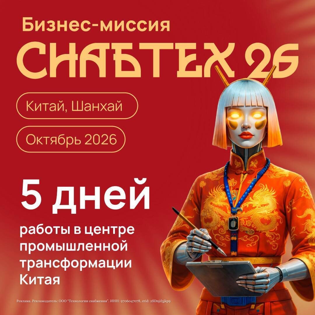 Для тех, кто рассматривает партнерство с Китаем как конкурентное преимущество 🇨🇳 Сегодня одной конференции недостаточно, чтобы понять, как меняется индустрия. Нужен формат, который позволяет увидеть технологии там, где они разрабатываются и используются каждый день. Бизнес-миссия СнабТех’26 — это концентрация того, на что обычно тратятся месяцы поисков и переговоров. Мы объединили в один маршрут доступ к ключевым производствам, прямым контрактам, промышленным решениям и крупнейшей выставке промышленной робототехники мира. Почему это удобно? Мы берем на себя логистику, трансфер, перевод и деловую программу, чтобы вы могли сосредоточиться на главном - поиске решений и технологий для развития эффективности бизнеса. 📍 В программе: ➡️ живые демонстрации на выставке CIIF ➡️ прямые диалоги с инновационными компаниями ➡️ доступ на производства ➡️ нетворкинг и экспертиза Бизнес-миссия — это превращение идей в план действий: что внедрять, с кем работать и какой технологический вектор выб