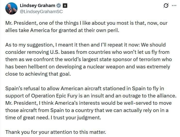 ΡΠ΅ΡΡΠΈΡΠΎΡΠΈΡ Π΄Π»Ρ Π²ΡΠ»Π΅ΡΠΎΠ², ΠΊΠΎΠ³Π΄Π° ΠΌΡ ΠΏΡΠΎΡΠΈΠ²ΠΎΡΡΠΎΠΈΠΌ Π³Π»Π°Π²Π½ΠΎΠΌΡ Π² ΠΌΠΈΡΠ΅ ΡΠΏΠΎΠ½ΡΠΎΡΡ ΡΠ΅ΡΡΠΎΡΠΈΠ·ΠΌΠ° β ΠΎΠ΄Π΅ΡΠΆΠΈΠΌΠΎΠΌΡ ΡΠ΄Π΅ΡΠ½ΡΠΌ ΠΎΡΡΠΆΠΈΠ΅ΠΌ ΡΠ΅ΠΆΠΈΠΌΡ, ΠΊΠΎΡΠΎΡΡΠΉ Π±ΡΠ» Π±ΡΠΊΠ²Π°Π»ΡΠ½ΠΎ Π² ΡΠ°Π³Π΅ ΠΎΡ Π΅Π³ΠΎ ΡΠΎΠ·Π΄Π°Π½ΠΈΡ. πΉΠΡΠΊΠ°Π· ΠΡΠΏΠ°Π½ΠΈΠΈ ΡΠ°Π·ΡΠ΅ΡΠΈΡΡ Π°ΠΌΠ΅ΡΠΈΠΊΠ°Π½ΡΠΊΠΈΠΌ ΡΠ°ΠΌΠΎΠ»ΡΡΠ°ΠΌ Ρ Π΅Ρ Π±Π°Π· ΡΡΠ°ΡΡΠ²ΠΎΠ²Π°ΡΡ Π² ΠΏΠΎΠ΄Π΄Π΅ΡΠΆΠΊΠ΅ ΠΎΠΏΠ΅ΡΠ°ΡΠΈΠΈ Epic Fury β ΡΡΠΎ ΠΎΡΠΊΠΎΡΠ±Π»Π΅Π½ΠΈΠ΅ ΠΈ ΠΏΡΠΎΡΡΠΎ Π²ΠΎΠ·ΠΌΡΡΠΈΡΠ΅Π»ΡΠ½ΠΎΠ΅ ΠΏΠΎΠ²Π΅Π΄Π΅Π½ΠΈΠ΅ ΠΏΠΎ ΠΎΡΠ½ΠΎΡΠ΅Π½ΠΈΡ ΠΊ Π°Π»ΡΡΠ½ΡΡ. πΉΠΠΎΡΠΏΠΎΠ΄ΠΈΠ½ ΠΏΡΠ΅Π·ΠΈΠ΄Π΅Π½Ρ, Π² ΠΈΠ½ΡΠ΅ΡΠ΅ΡΠ°Ρ