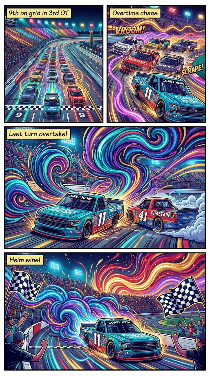 В последнем повороте действующий чемпион серии обошел Росса Чистейна, гонщика высшего дивизиона Наскар.