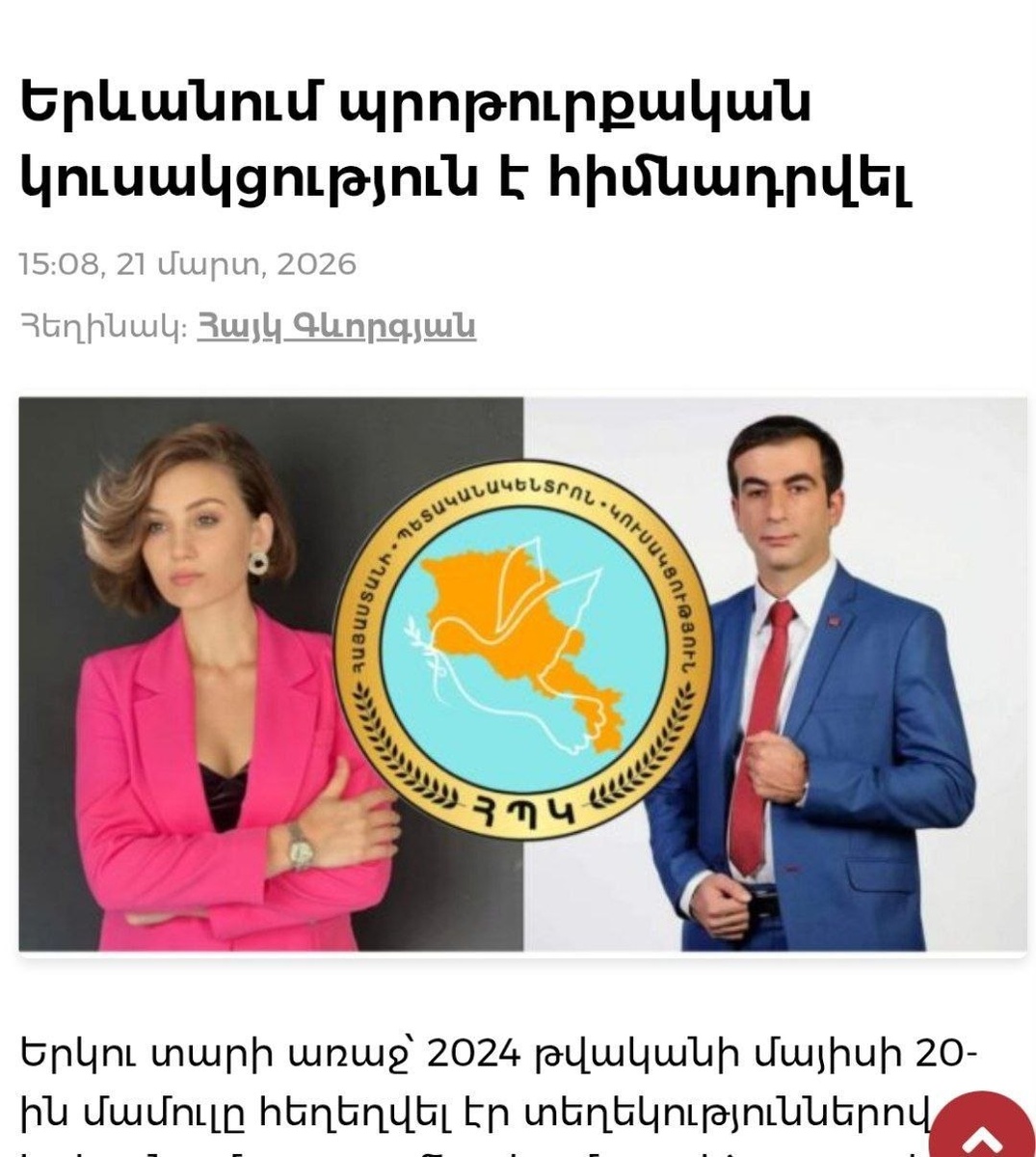 Два года назад — 20 мая 2024 года — пресса была переполнена сообщениями о том, что в Ереване пытались создать протурецкую, а возможно — турецкую партию. К теме обращалась член Совета старейшин Еревана Марина Хачатрян, комментируя задержание блогера Артура Чахояна, который пытался сорвать учредительный съезд указанной партии. За этим всем стоит лицо, представляющееся Натальей Алексанян, проживающей в Турции, но на самом деле это торговка Татевик. Данная женщина активно вела пропаганду в интернете, пытаясь открыть в Республике Армения турецкую партию, в руководство которой входит бывший член партии “Просвещённая Армения”, а затем партии “Мгер Армения” — Роман Назарян. Однако на фоне поднятого тогда шума партия так и не была создана, а Роман Назарян ушёл в подполье. После двух лет молчания стало известно, что протурецкая партия уже открыта — она называется «Голос народа» ... 🛑Подпишись на Говорит Ереван