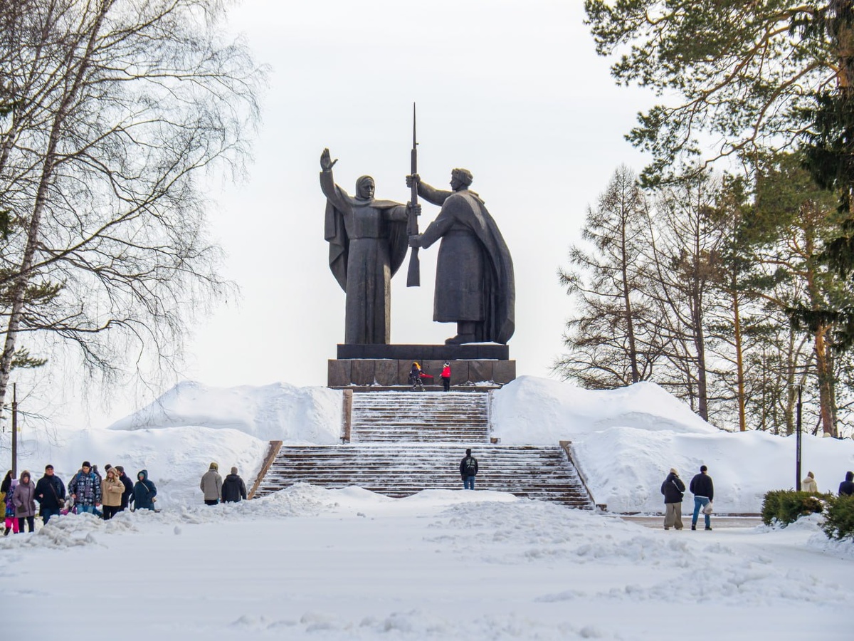 Впрочем, снега всё еще очень много. Мотоциклисты-питбайкеры открывают сезон, а над городом взвелась ввысь новая доминанта — высотка в "сталинском стиле".