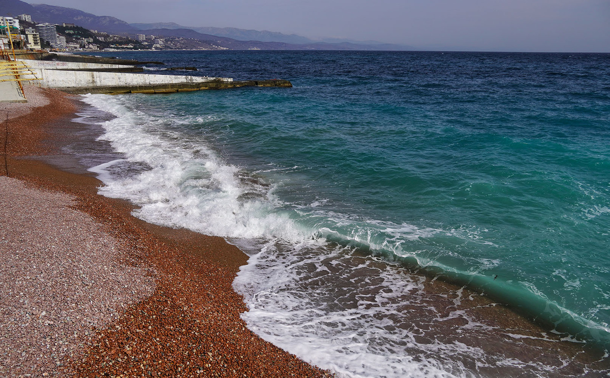 В Крыму в связи с мусульманским праздником Ураза-Байрам вчерашняя пятница была не рабочей (впрочем, я пока продолжаю сачковать, находясь на вроде бы больничном). Сидеть дома скучно и это не наш метод. Поэтому в четверг вечером планировалась поездка в район Бахчисарая, без заранее намеченной конкретной цели, т.е. без определенного маршрута. Все поломало утро. Утро в Симферополе было туманным, с нема сыпалась какая-то очень мелкая морось. В принципе, в Бахчисарае, находящемся в 30 км от нас иная погода не предвиделась. И после не долгого обсуждение было решено отправиться в Алушту, погулять возле моря. Потому что даже если и там погода не фонтан, то там есть моро и морской воздух. Если в прошлую (февральскую) поездку южная сторона Крымских гор нас встретила туманом и ветром, то в этот раз в Алуште было солнце и легкий ветер. Особого тепла не было, но и холода тоже. Фотосъемку я не планировал. И длительное время держал фотокамеру в рюкзаке снимая телефоном видео для небольшого филь