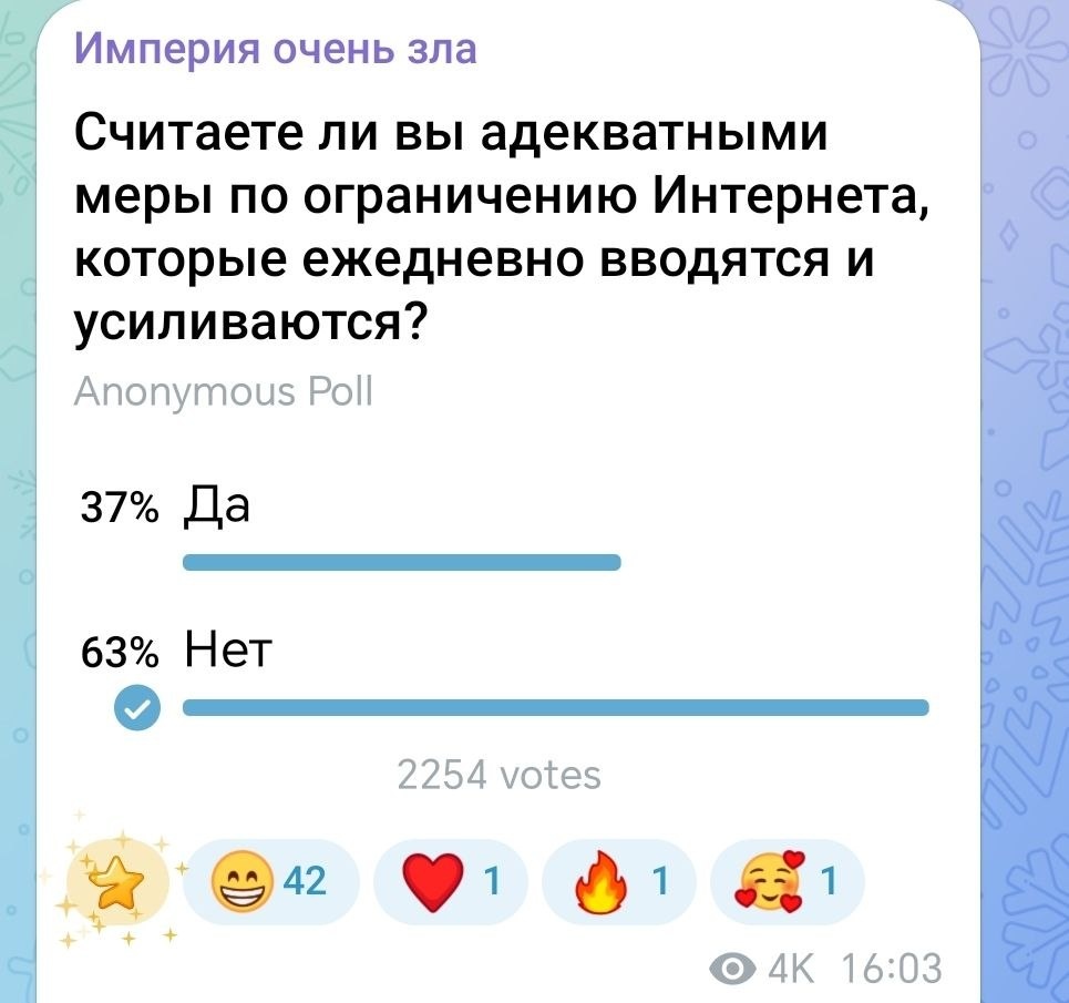 Жаль, не получается провести неанонимный опрос. Посмотрели бы на арабов и китайцев сторонников блокировок