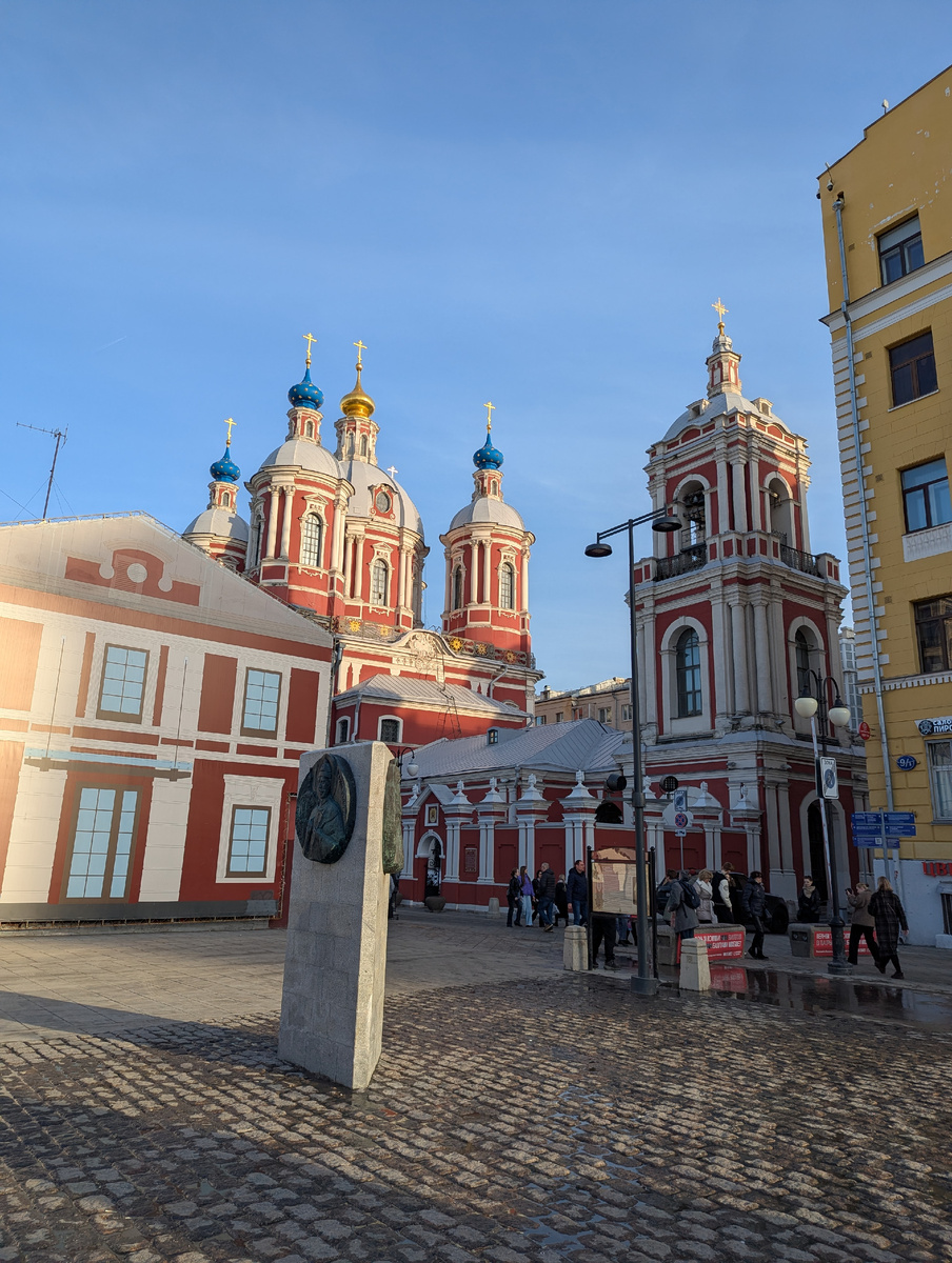 На фото ниже храм Святого Климента Папы Римского. Внутри очень красиво, один из самых красивых храмов Москвы. Почему я иногда хожу на службы сюда, а не в мою родную церковь в Реутово? Мне очень удобно - села в метро у дома и без пересадок прямая ветка до Третьяковской, а тут от метро два шага. Храм большой, а прихожан гораздо меньше, чем у нас (у нас бывает очень тесно, особенно в праздники).