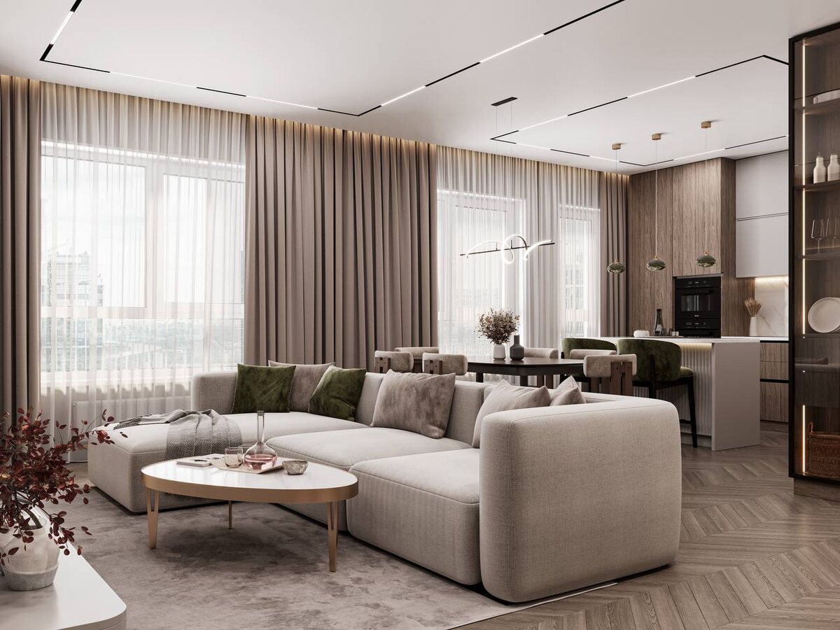 КУХНЯ-ГОСТИНАЯ: ПРОДУМАННОЕ ПРОСТРАНСТВО ДЛЯ ЖИЗНИ В проектах Arch DETALI кухня-гостиная - это всегда результат точных расчётов и глубокого понимания сценариев жизни, а не просто объединённые зоны. ЧТО ВАЖНО УЧЕСТЬ: Планировка под образ жизни