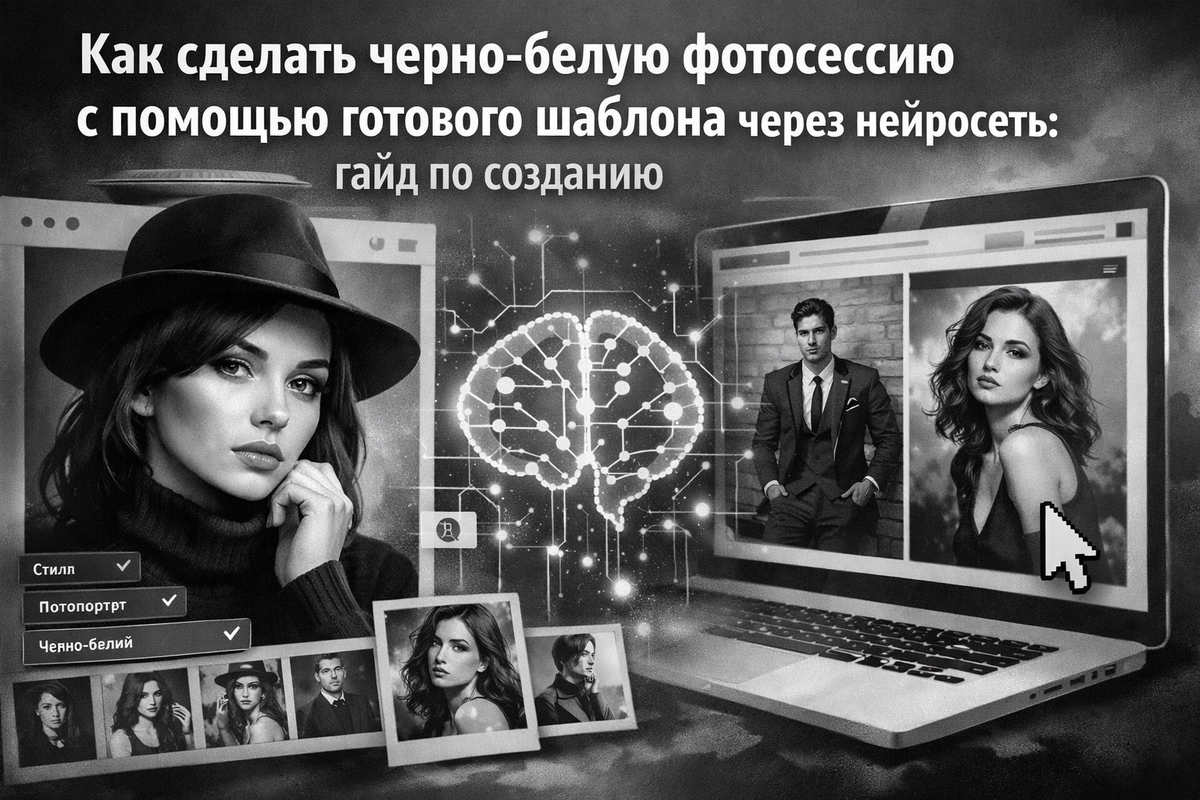 Как сделать черно-белую фотосессию с помощью готового шаблона через нейросеть: гайд по созданию.