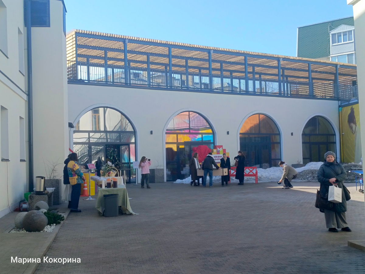 Сегодня у меня выдался настоящий выходной. Мы с мужем решили не сидеть дома и отправились на прогулку по городу. О том, где мы еще побывали, расскажу чуть позже, а пока, не откладывая в долгий ящик, хочу поделиться впечатлением, которое получили совершенно случайно. Мы просто гуляли и вышли к улице Соборной, 14. Там находится Дом молодёжи. Ворота во дворик были открыты, и мы решили зайти — и не зря! Нас встретил уютный, оживленный дворик. Сразу видно, что место создано для творчества и отдыха. Прямо под открытым небом молодежь с азартом играла в настольный теннис и футбол. Справа взгляд упал на красивый мурал, слева — девушки из пекарни «Дусь» (которая, кстати, находится неподалеку) радовали посетителей ароматной домашней выпечкой. А впереди нас ждало главное открытие — дверь с указателем: «Теплый маркет». Мы зашли и оказались на настоящей выставке мастеров ручной работы. Здесь столько всего интересного! Игрушки, созданные с душой, авторские украшения, милые открытки, изящные б