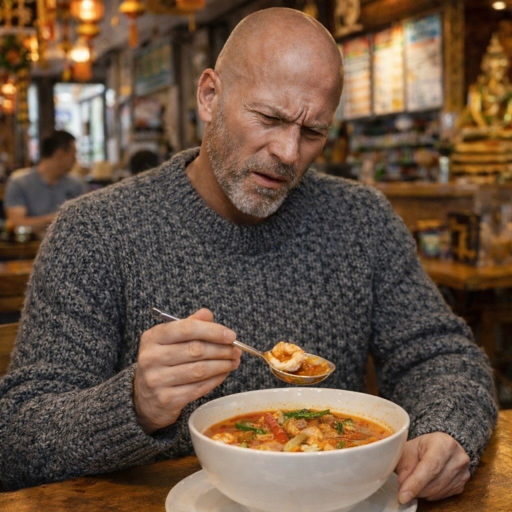 В отчаянии он хлебнул поданного в бокале с соломинкой кокосового молока (ну очевидно же?! Какое еще молоко могло быть в тайском кафе?) - С трудом проглотил, отставил стакан и молча вышел из заведения.