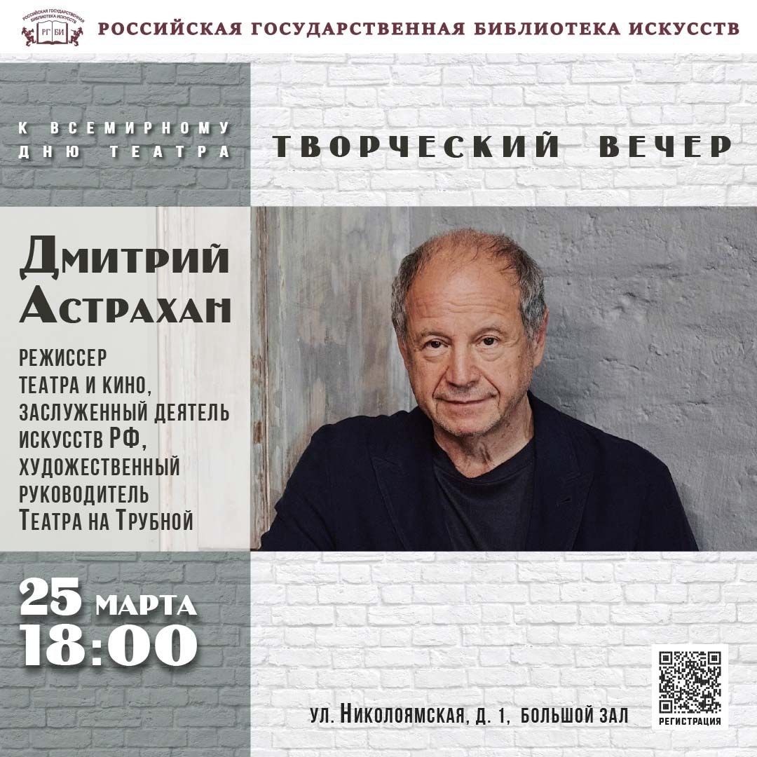 🎭 В преддверии Всемирного дня театра Российская государственная библиотека искусств приглашает на творческий вечер режиссёра театра и кино