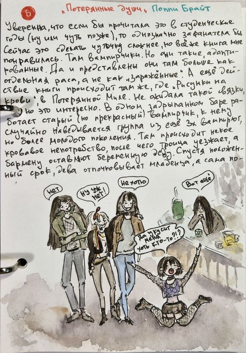 Уверенна, что если бы прочитала это в студенческие годы (ну или чуть позже), то однозначно зафанатела бы. Сейчас это сделать чуточку сложнее, но всё же книга мне понравилась. Там вампирчики. Но они такие, адаптированные. Да и представлены они там больше как отдельная раса, а не как «заражённые». А ещё действие книги происходит там же, где «Рисунки на крови», в Потерянной Миле. Не ожидала такой связки, но это интересно. В одном задрыпанном баре работает старый (но прекрасный) вампирчик, к нему случайно наведывается группа из ещё 3х вампирюг, но более молодого поколения. Там происходит некое кровавое непотребство, после чего троица уезжает, а бармену оставляют беременную деву. Спустя положенный срок, дева отпочковывает младенца, а сама помирает ибо все вампиры (данной вселенной) при рождении убивают свою мать. Так вот получается. Бармен нарекает младенца гордым именем Никто и подбрасывает под дверь рандомной семье. Мальчик растёт и у него бурлит юношеский тлен, меня не понимают, я тут не