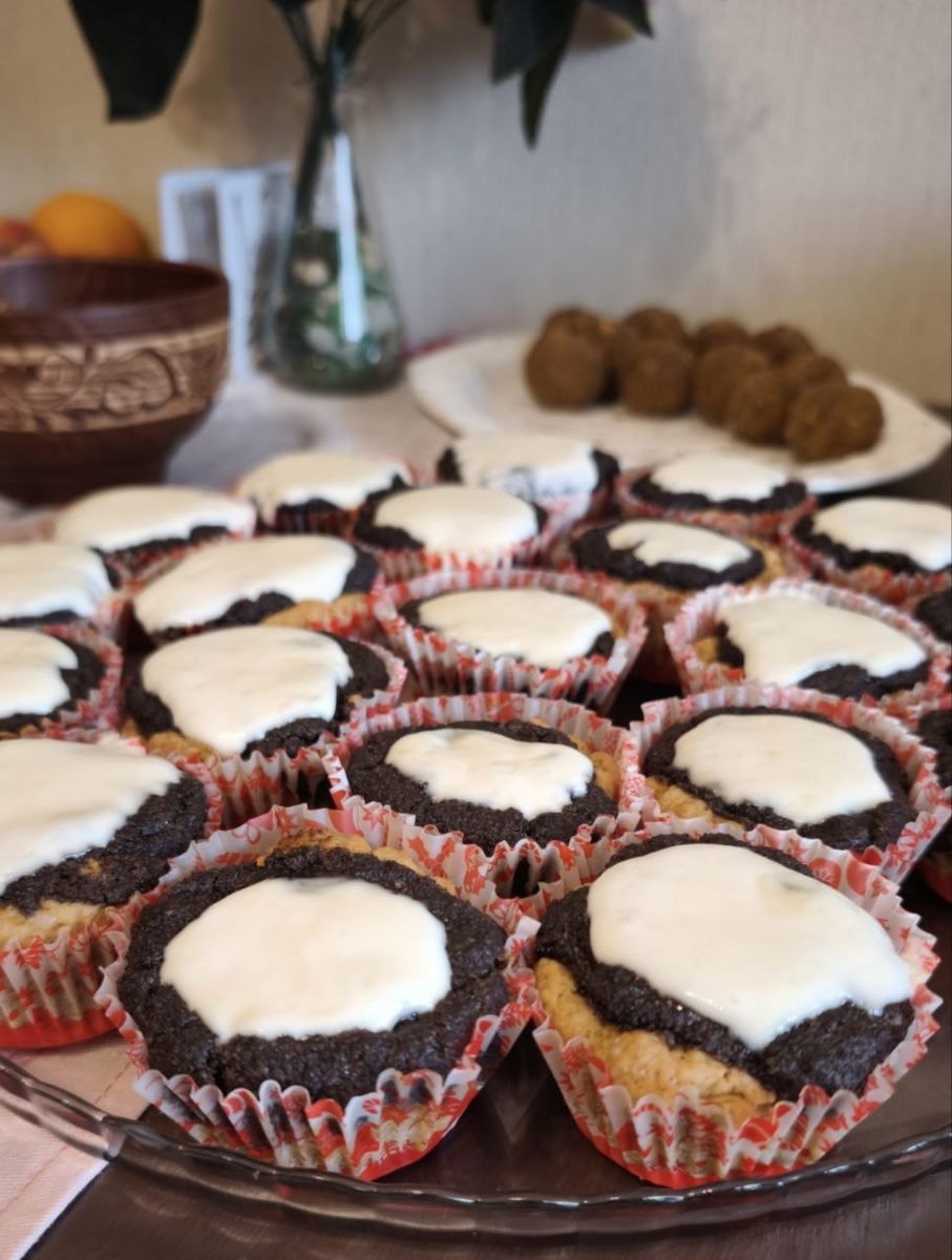 ✴️ в составе : Молочные продукты, пшеница, без сахара ❤Нежный, тает во рту, лёгкая кислинка, приятная сладость.... Мммм наслаждение ❤ Ингредиенты: 🌞тесто : 220 гр - цельнозерновой пшеничной муки 100 гр - нерафинированного сахара 1 коф.л - соды 0,5 коф.л - соли 1 ст.л - яблочного уксуса 2 ст. л. - сметаны 20% 125 г - сливочного масла комнатной температуры 82,5% 2 коф.л - гарам масала (корица, имбирь, кардамон, Анис, мускатный орех, гвоздика) или ваниль 🌞начинка : 200 г - мака 250 мл - молока 20 гр - крахмала 50 -70 мл воды 2 ст.л. - масла сливочного 82,5% 2 ст.л - Мёд Соус 100 гр - Сметаны 20% 1-2 ст.л - Меда Приготовление: Тесто 🍀 Масло мягкое смешать с сахаром и сметаной, яблочным уксусом. Муку, соду, соль, специю смешать. Соединим масло и муку. Вымешиваем тесто, оно липкое. Даём отдохнуть. Начинка 🍀: Мак залить молоком и проварить 5-10 минут. Разбавим водой 50-70 мл крахмал, перемешаем до однородной консистенции. Добавляем в мак. Варим, помешивая до густоты. Добавим мас