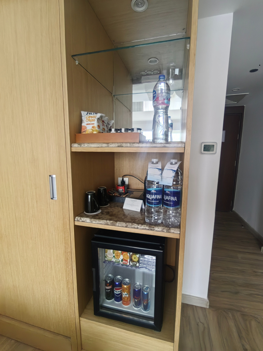 Особо рассказывать не о чем, понятно, что тут есть стандартный набор в ванной, мини бар, чайник, чай и кофе.