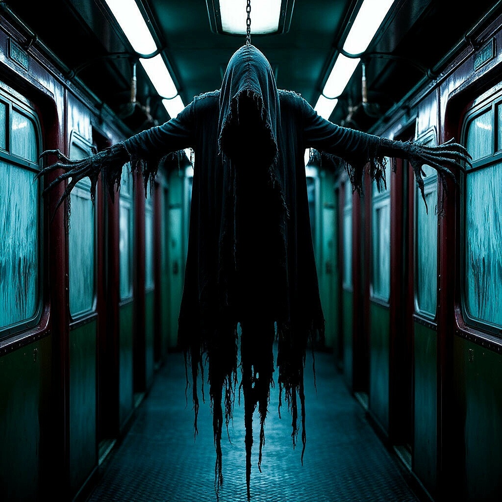 Оно двигалось не торопясь, казалось обнюхивает каждого кто сидел в вагоне. Я боялся что меня выдаст стук моего сердца. Мне казалось звук раздается по всему вагону.