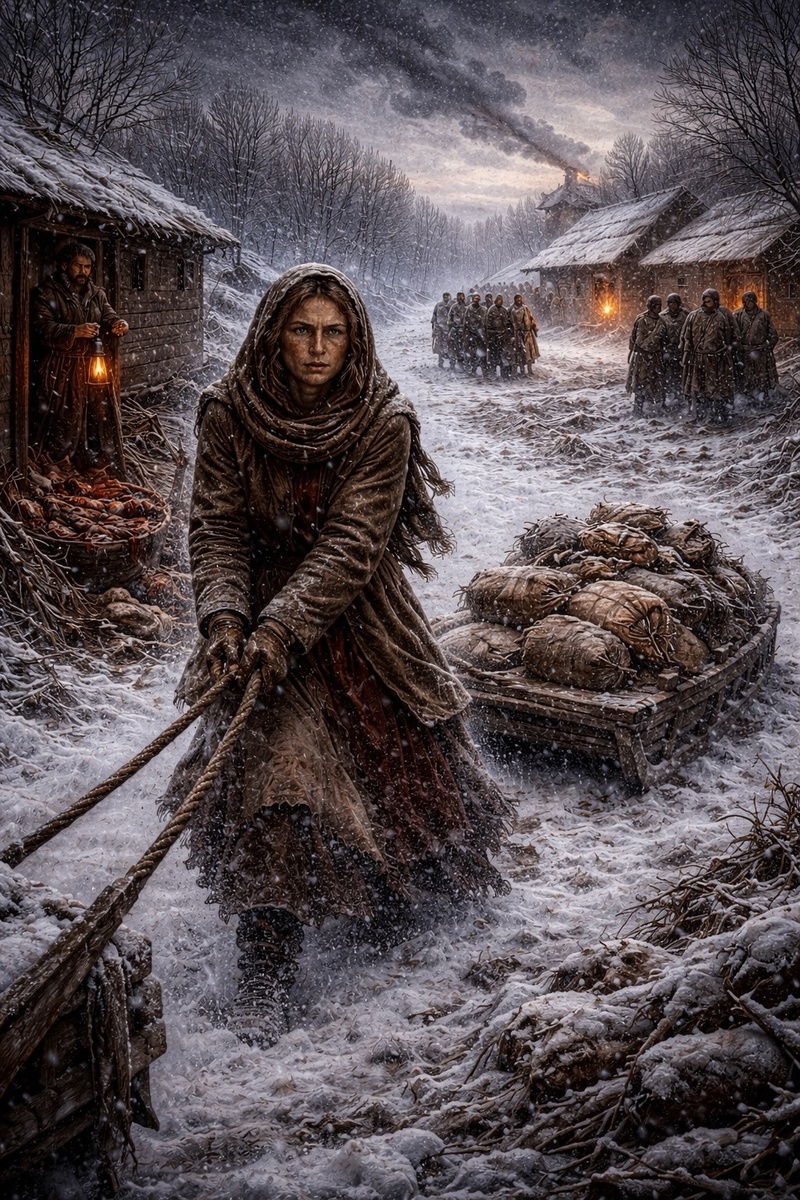 Мешки были тяжёлые, другие. Анисья не спрашивала, что в них, но чувствовала — что-то неладное. Возница молчал, как рыба. Лошади шли тяжело, увязая в снегу.