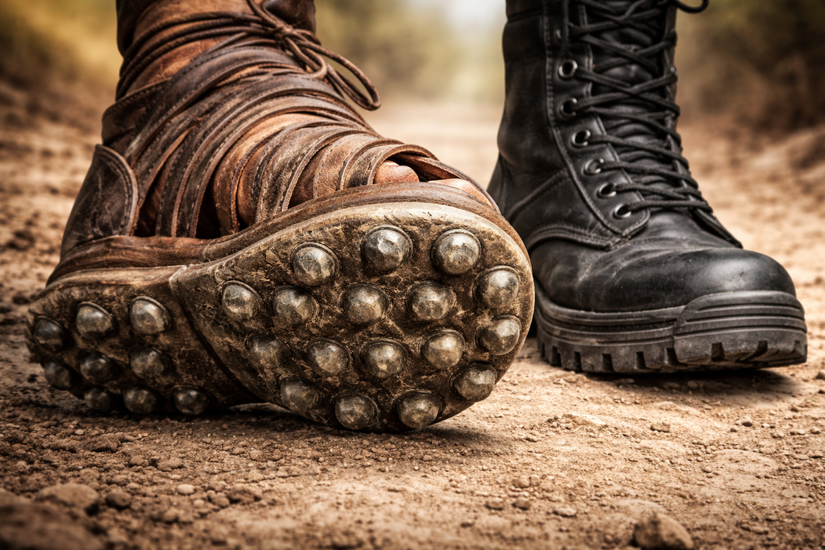 Подошва римской калиги — военной сандалии легионера — была усеяна железными гвоздями. Не для красоты. Гвозди врезались в грунт на каждом шагу, не давая ноге скользить, распределяя нагрузку, продлевая срок службы кожи. На одну пару калиг уходило от восьмидесяти до ста двадцати гвоздей, в зависимости от размера. Легионер, шагающий по каменной дороге, был слышен издалека — характерный цокот, от которого у жителей провинций вздрагивали.