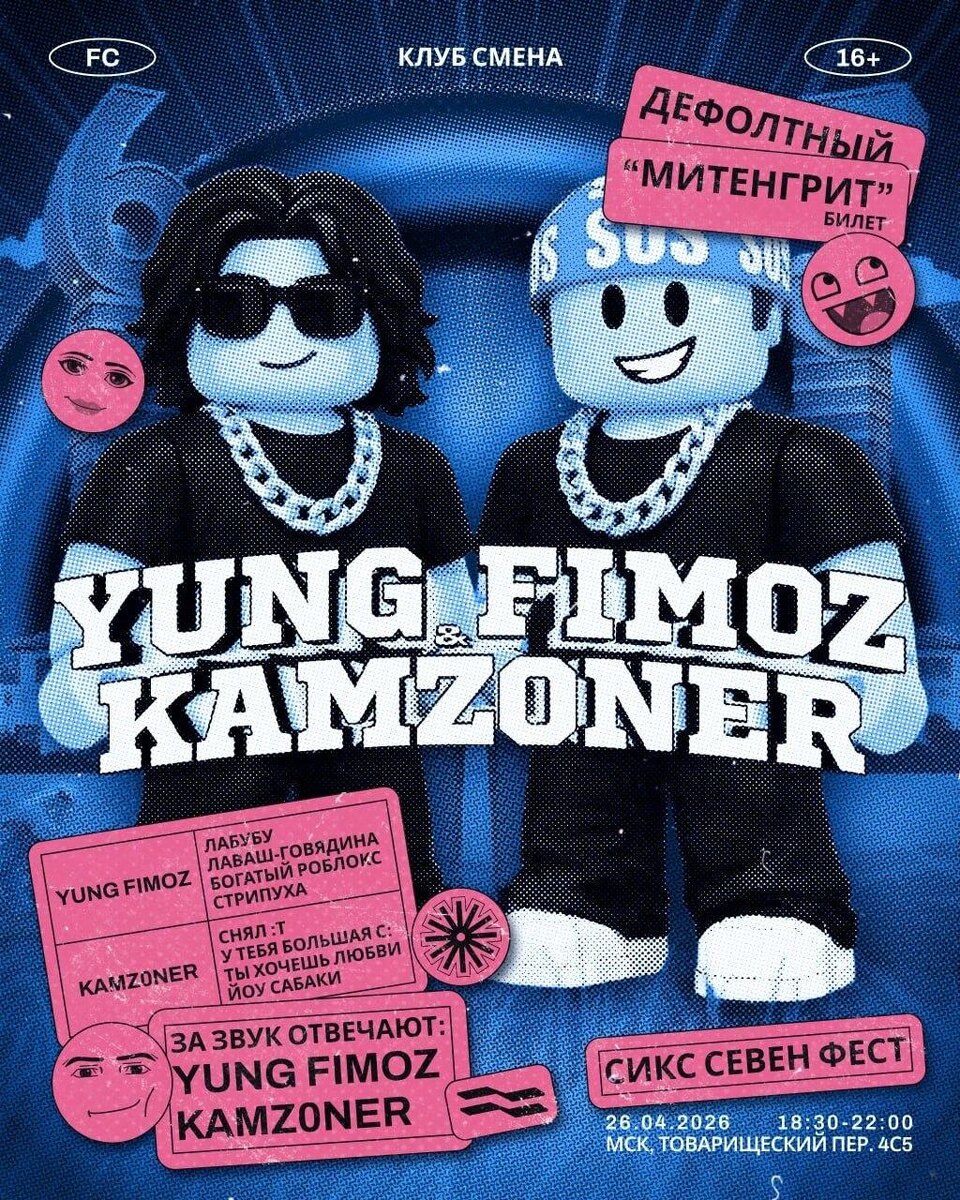 🎤 – KAMZ0NER, YUNG FIMOZ 📍 – «Смена», Москва, Товарищеский пер. д. 4 стр. 5 🗓 – 26 апреля 💵 – от 700 руб. 🔗 – билеты (16+) #концерты #билетынаконцерт #сикссевенфест #москва #сменамск #kamz0ner #yungfimoz 👉 Список концертов: март • апрель • май @est_prohodka
