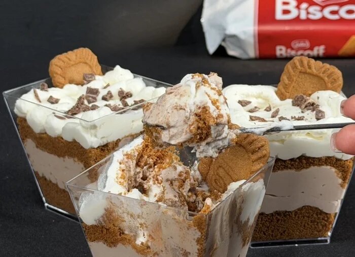 после прошлого чизкейка с печеньем я поняла одну вещь, что мне это очень понравилось и самое главное почти ничего не надо печь поэтому решила продолжить эксперимент. в этот раз снова взяла Biscoff если вдруг не пробовали — у него такой карамельно-пряный вкус, и в десертах он очень хорошо раскрывается, но в магазинах найти его не могу, но в целом мне кажется и юбилейное подойдет ,делается всё максимально просто. Я делала так: Раскрошила печенье , потом сделала из крошки нижний слой в стаканчике, а потом самое интересное делаем крем.