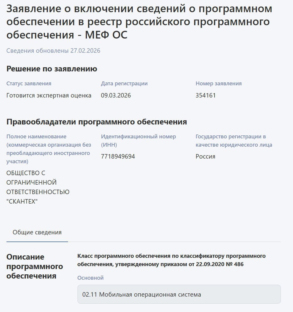 Это голый Android без всех сервисов Google, заточенный под промышленную технику: КПК, терминалы сбора данных и прочие рабочие устройства Большинство россиян даже не попробуют МЕФ, т.к. это узкоспециализированная система под бизнес-задачи: склад, логистика, производство Нейминг правда так себе 🥴 Крамола | Подпишись на нас в MAX