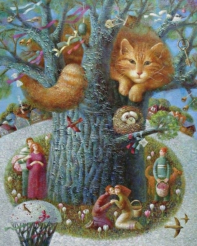 , ДЕНЬ ПОЭЗИИ! У меня в стихах всё просто, Без особых наворотов: Если слёзы, то их вдосталь, Если любят, то без квоты. Если котик, то волшебный, Добрый, мудрый, говорящий. Ангел, светлый несомненно, Вынесет из тёмной чащи 🐾 @Marinaagat Марина Агат 🎨 Мария Самолётова "Замечательная жизнь"