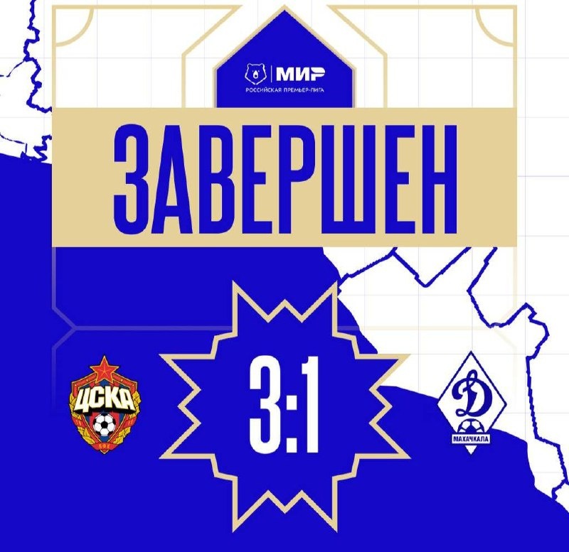 Махачкалинское «Динамо» в матче 22-го тура РПЛ в гостях уступило ЦСКА — 1:3