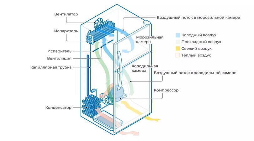 Чтобы понять причину, нужно вспомнить, как работает современный двухкамерный холодильник. Существует два основных типа:
