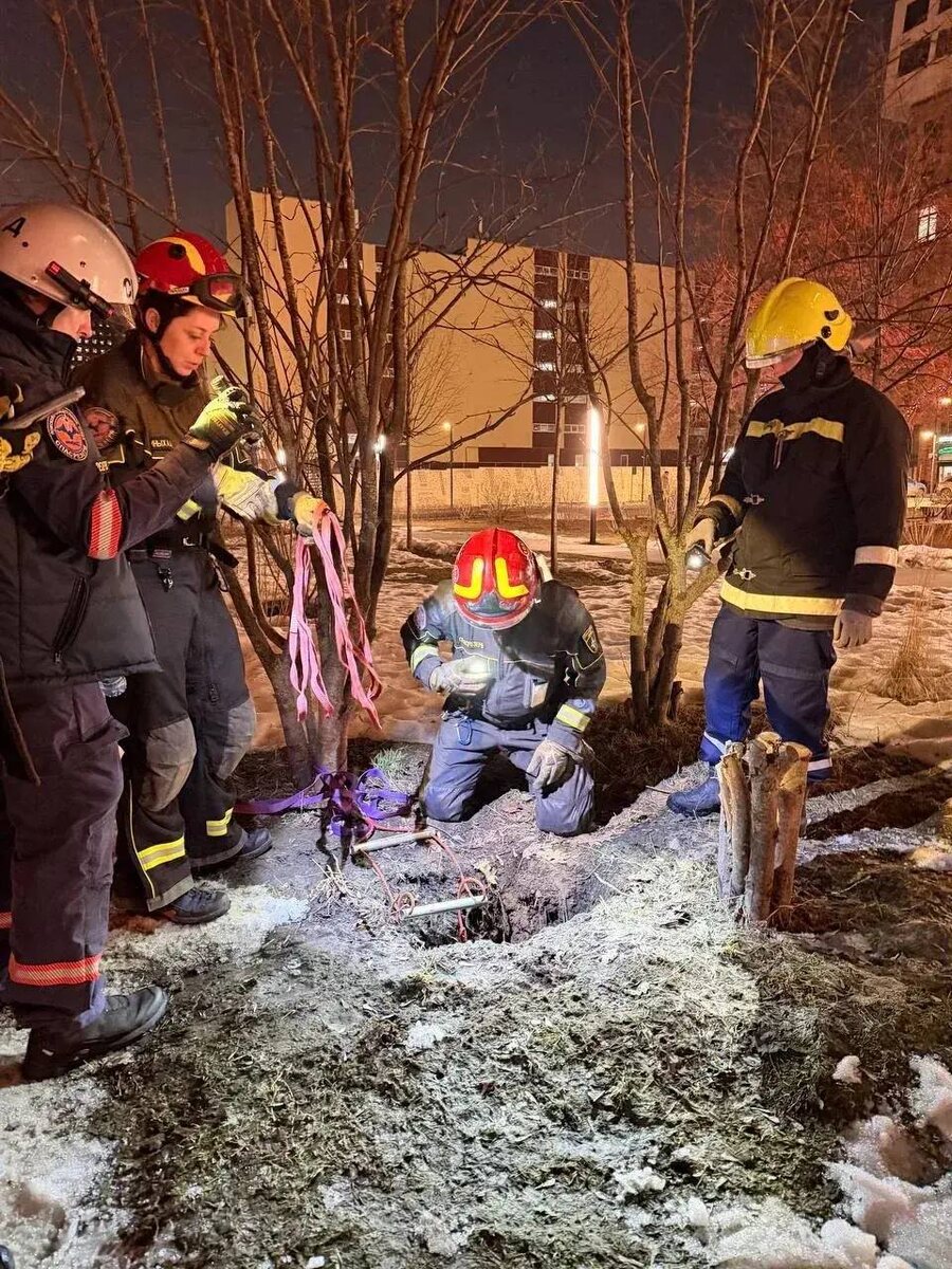 19 марта 2026 г. Помощь животным 📍парк имени Зорге Синее небо, тишина, горящие фонарики на благоустроенных дорожках. Но пасторальную картину в элитном жилом комплексе нарушил собачий лай, доносящийся из-под земли и человек, который громко звал своего пса. Поздно вечером мужчина гулял со своим четвероногим другом в парке. Шелби радовался, что можно пробежаться за игрушкой без поводка. Внезапно пёс пропал, буквально провалился сквозь землю. Мужчина подошёл к месту телепортации и увидел Шелби внизу на глубине около 3-х метров. Хозяин подумал, что собакен провалился в яму из-под выкорчеванного дерева, так он и сказал оператору «Службы 112». После предварительной разведки спасатели опустили в узкую, глубокую яму веревочную лестницу. Анна Фоминых спустилась к животному, дно ямы было покрыто кашей из мокрого грунта. Пес очень испугался, он буквально дрожал и по первому зову пошел в руки к спасателю. Шелби зафиксировали альпинистскими петлями и, подталкивая под толстую попу, вытащили.
