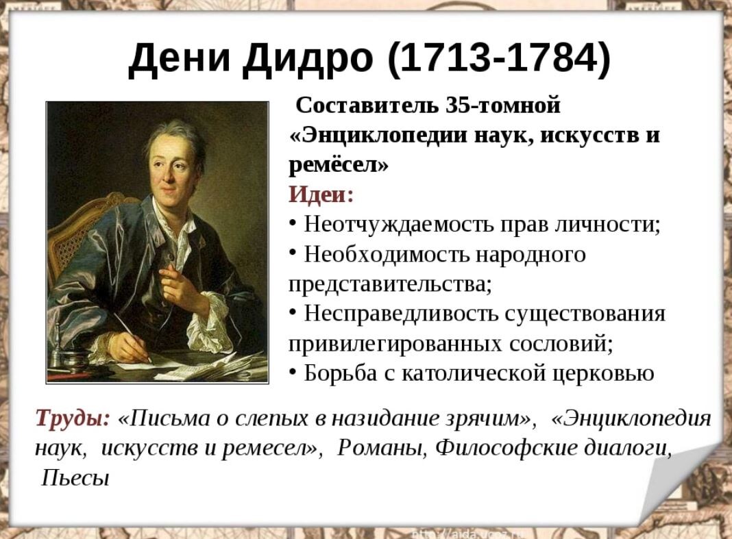 АТЕИСТ ДЕНИ ДИДРО В Дени Дидро я влюбилась в 2010 году, когда читала "Семирамиду" Мориса Симашко. Доцент Ланкастерского университета Гэвин Хаймен, автор книги, посвященной истории атеизма [Hyman 2010], считает, что первым мыслителем-атеистом, который открыто признавал и называл себя таковым, был Дени Дидро (1713—1784) — главный редактор знаменитой «Энциклопедии наук, искусств и ремесел», издававшейся в 1752—1766 годах и ставшей фундаментальным интеллектуальным проектом, в полной мере воплотившим в себе идеи Просвещения как с точки зрения охвата тем, так и с точки зрения просветительских целей. С 1751-го по 1778 год Д. Дидро написал для энциклопедии тысячу двести статей и отредактировал — вместе с Жаном Лероном Д’Аламбером (1717—1783) — почти все семнадцать томов. В статьях «Энциклопедии» последовательно, хотя и в осторожной форме, проводились мысли о том, что христианство «вовсе не включает в себя <…> принуждение совести, насильственное отправление культа божеству» (статья «Христианст