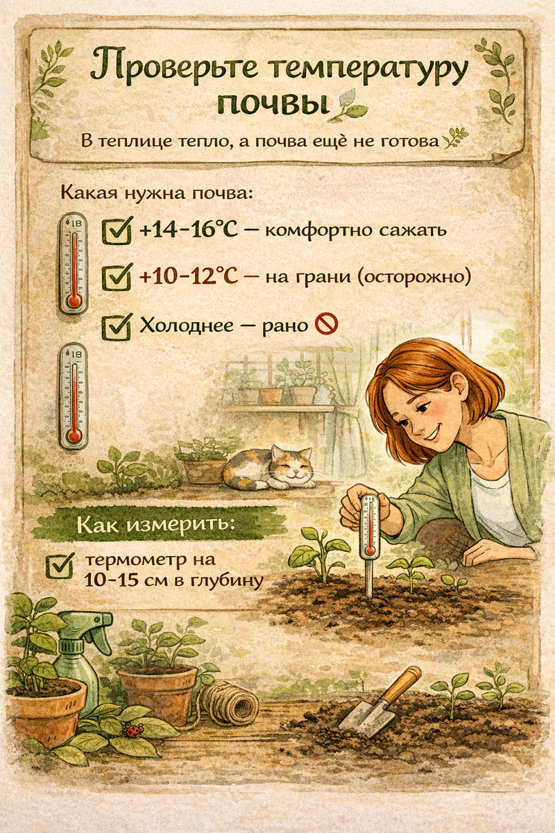 дать немного "осесть" Если сомневаетесь в температуре: Это ускоряет прогрев. Заранее решите: Это убережёт от хаоса и зарослей. Правильная схема: Если коротко: Готовая почва = тёплая + рыхлая + влажная + живая Подготовленная почва =г