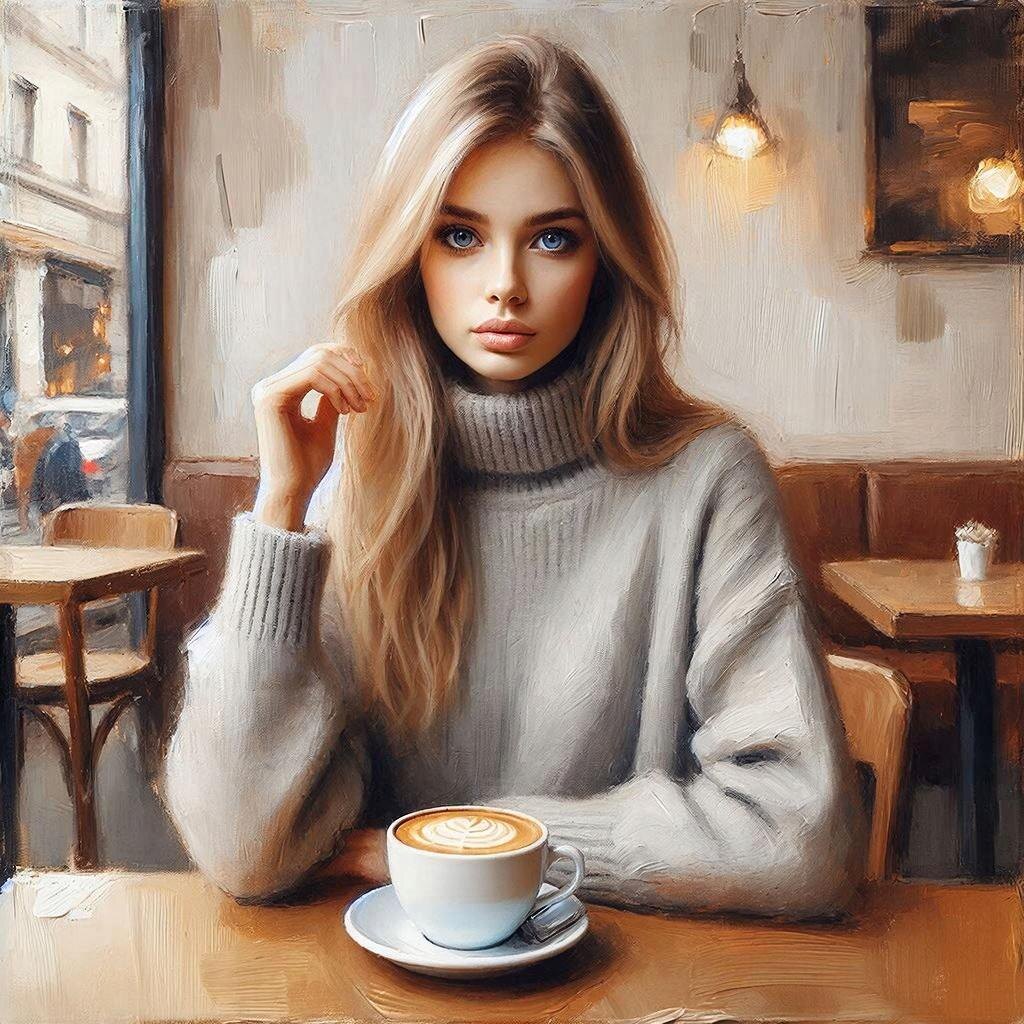 Она сидела за столиком у окна, выпрямив спину так, будто собиралась участвовать в конкурсе на лучшую осанку. Ее длинные выпрямленные волосы, цвета спелой пшеницы, струились по плечам безупречной, гладкой массой - ни единого завитка, ни единой непослушной пряди. Голубые глаза, ясные и холодные, как горные озера, изучали чашку с латте, проверяя, не оставил ли бариста пену неровной. Бархатистый ромб на поверхности был идеален. Катя удовлетворенно кивнула своим мыслям.