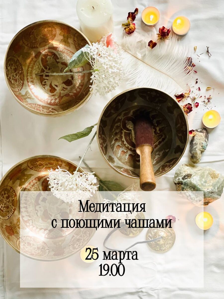 с поющими чашами. 5 удивительных эффектов от медитации. 🌸 «Чистое сознание». Звуки поющих чаш гармонизируют сознание, останавливают поток мыслей в голове. После медитации Вы почувствуете себя отдохнувшим, с ясным сознанием! 🌸 Баланс нервной системы. Проверенный факт- напряжение нервной системы напрямую связано с тем, какими звуками Вы окружены. Пение чаш - один из самых сладких звуков для наших нервов. Попробуйте сами! 🌸Свежий вид. Звуковые волны благотворно влияют на лимфатическую систему, стимулируя ее. В результате улучшается обмен веществ, уходят отеки и Вы становитесь цветущей розой 🌹 🌸Хорошее настроение. Поющие чаши благотворно влияют на органы внутренней секреции, таким образом приводя в баланс гормональную систему. А как известно всем, от ровного гормонального фона напрямую зависит настроение! 🌸 «Я в ресурсе» Что отбирает у нас силы? Лишает желания жить и радоваться? Конечно, стресс. Если снизить уровень напряжения - силы и энергия вернутся к Вам очень быстро! Поющи