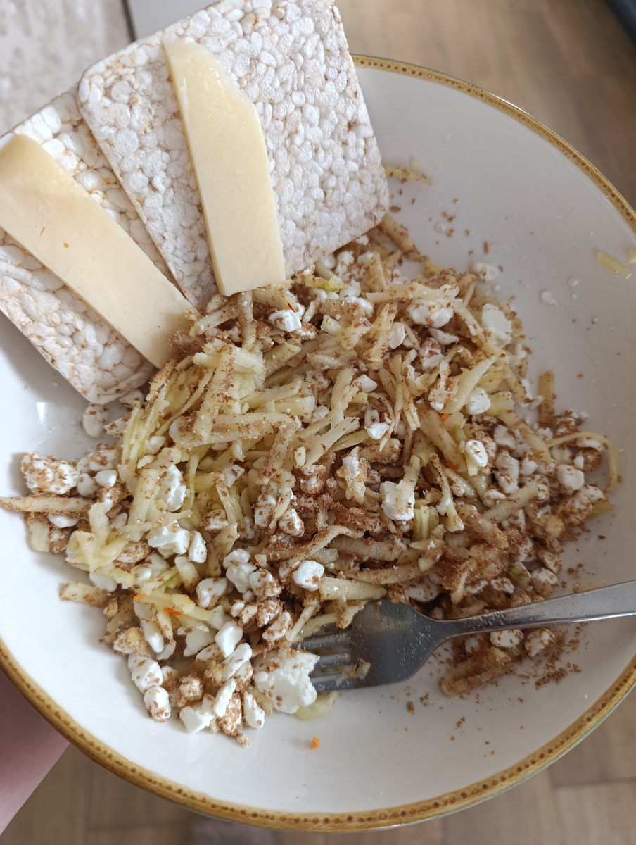 Творог 0,5% 100г, яблоко 100г + отруби, хлебцы + сыр 30г, растительное масло 5 г. Кофе с молоком. Гречка 120г, курица 110г, квашеная капуста 100 г. Кофе с молоком Гречка 130 г, фарш 110г. Итого: 297 (23, 10, 27) + 351 (35, 10, 31) + 459 (23, 29, 26) = 1107 ккал (БЖУ 81, 49, 84) Из физнагрузки пробежка 6 км)) Отчет за предыдущий день/вчера) Продолжаю питаться с дефицитом калорий, поскольку цель еще не достигнута, но об этом позже) #рацион#пп#похудение