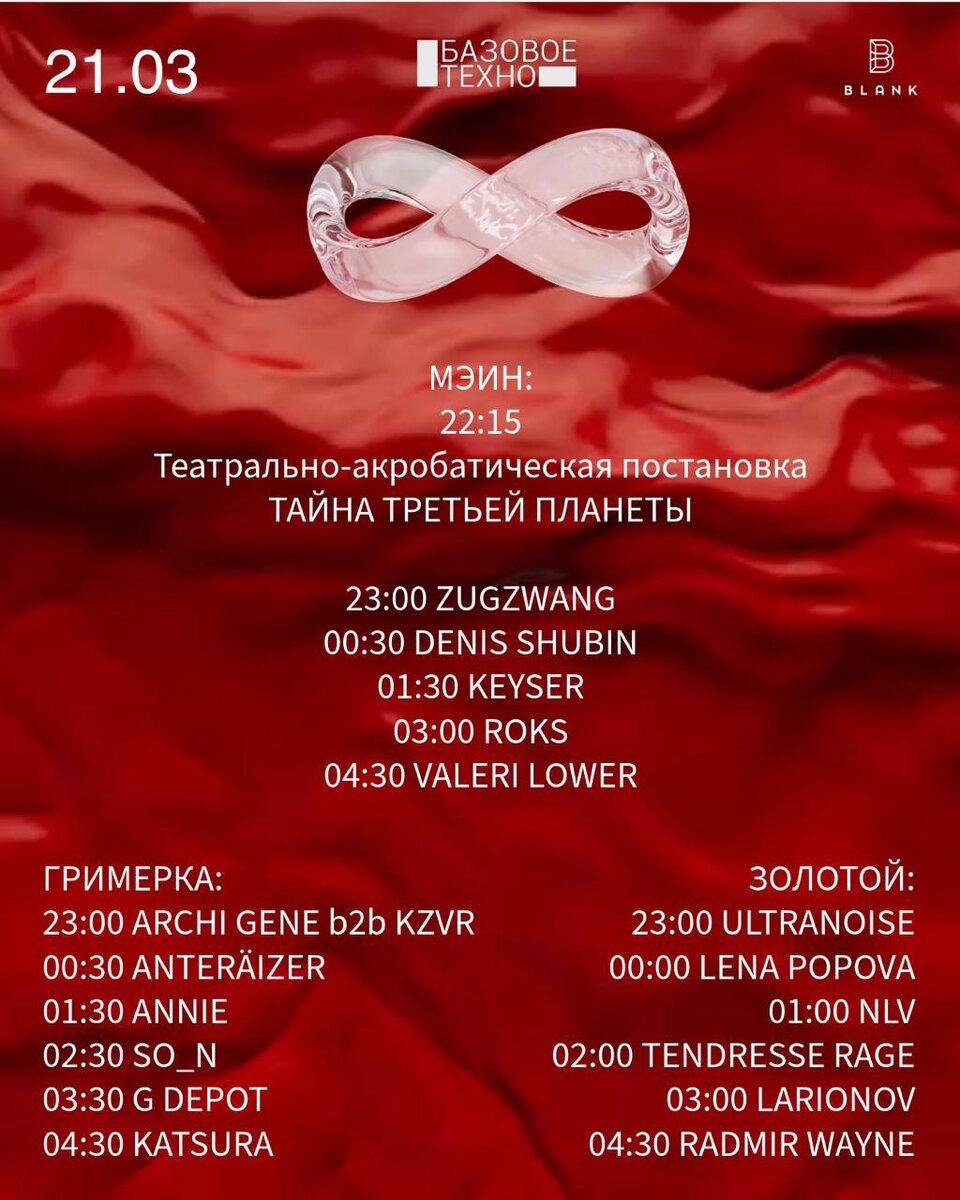 21 марта / Blank Сохраняйте расписание праздника! Вход откроется в 22:00, настоятельно рекомендуем приходить к началу, что бы посмотреть перформанс. 🎫 Билеты 📆 21 марта, в 23:00 📍Blank, Санкт-Петербург, Арсенальная наб.1