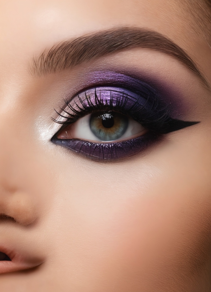 Для коррекции формы глаз растушевка играет ключевую роль. Углубление внешних уголков с помощью темных оттенков создает эффект миндалевидной формы, делая взгляд более выразительным. Наносите темные тени на внешний угол и растушуйте их к центру века, а светлые или шиммерные оттенки используйте для внутреннего уголка и под бровью. Это визуально открывает глаза и придает им дополнительную широту.