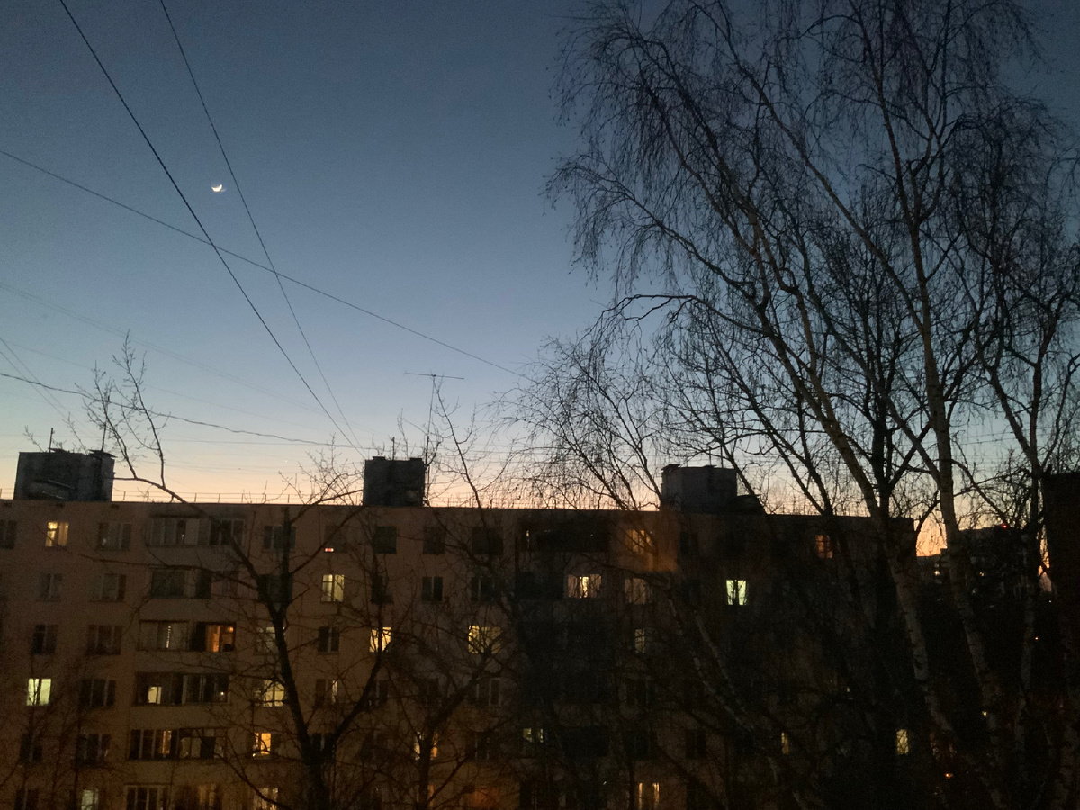 Наблюдаем за небом: Сейчас, 21 марта 2026 года в 19:30 вечера, прямо на западе не слишком высоко над горизонтом можно наблюдать месяц Луны и чуть ниже него Венеру, которая выглядит как довольно крупная и яркая белая звезда. Венера зайдет скоро — в 20:27 😴 На юге можно наблюдать Юпитер, в виде так же крупной, но желтоватой звезды. Юпитер будет подниматься выше и далее пойдет на запад. Заход Юпитера состоится в 04:31 ночи (или утра, кто как смотрит) 🌌 🌒 🪐