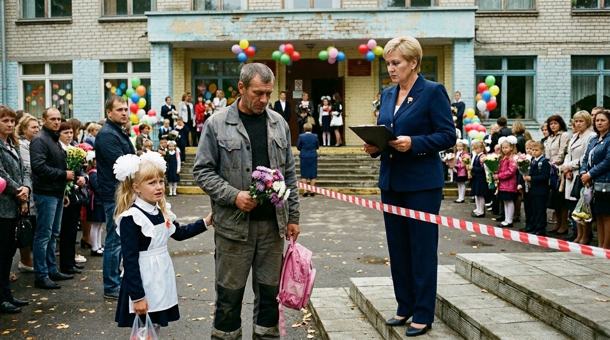 Виктор почувствовал, как внучка тянет его за рукав назад, к себе. Он посмотрел на её банты, на букет в своей руке, на ленту, натянутую вдоль прохода, и понял, что спор здесь кончится плохо только для неё. Если он сейчас останется, дети увидят скандал. Если начнёт кричать, Маша запомнит первый школьный день по чужим голосам.