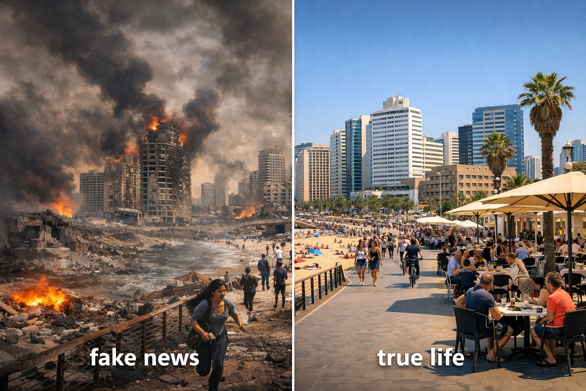 Все видео с пылающими "израильскими" городами взяты либо из хроники войны в Сирии, либо в Ливане. Все картинки с толпами ломящихся на теплоходы израильтян, старающихся убежать от войны, сгенерированы нейросетью.