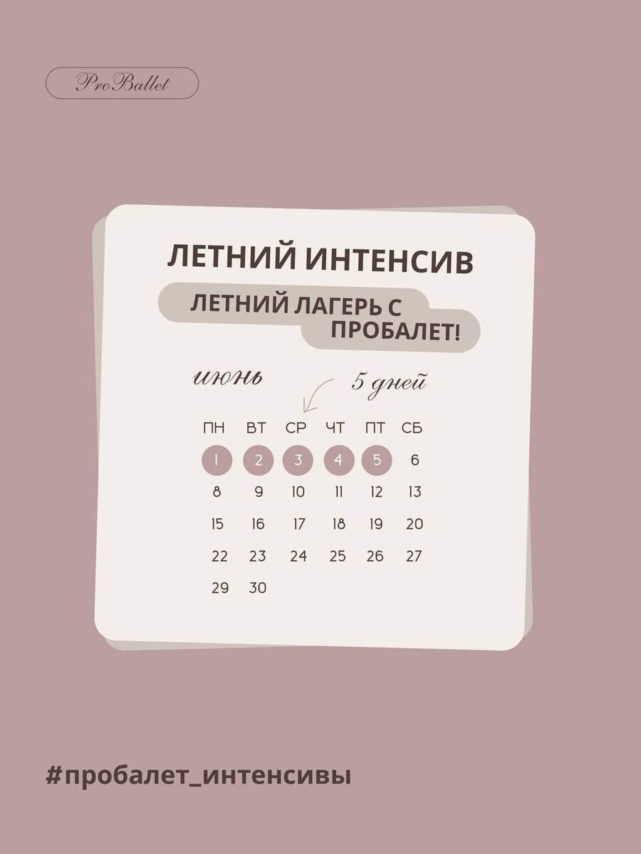 ! С радостью сообщаем — запись на наш летний интенсив уже открыта! 🔥 Программы летних интенсивов разработаны преподавателями нашей школы с учётом возраста и уровня подготовки детей. Они направлены на повышение хореографического мастерства, погружение в мир искусства, новые знакомства, общение и увлекательное времяпровождение со сверстниками и педагогами 📌Даты: 1-5 июня | Понедельник-пятница 📌Программа интенсива: 1️⃣Развитие физических данных 2️⃣Классический танец 3️⃣Народно-сценический танец 4️⃣Сценический репертуар 5️⃣Актерское мастерство 📌Лучший состав преподавателей: Пронина Дарья, Лунейкина Светлана, Ляшенко Анастасия 📌Возрастные группы: 🔴Младшая группа | 5-7 лет 🔴Средняя группа | 8-12 лет 🔴Старшая группа | 13-17 лет 🔗 Для записи обращайтесь по телефону +79671907735 (WhatsApp, Max), Telegram @pronina_dr или по ссылке #пробалетинтенсивы