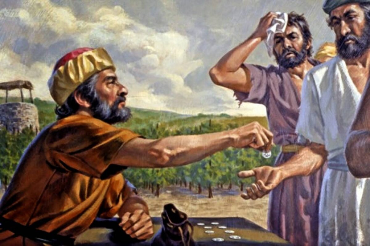 Сегодня в храмах читают восьмидесятое зачало Евангелия от Матфея, где Господь говорит: Ибо Царство Небесное подобно хозяину дома, который вышел рано поутру нанять работников в виноградник свой. Виноградник-то его, а работников вышел нанять за определённую плату. И, договорившись с работниками по динарию на день. То есть это обычная оплата, один денарий за один день труда. Послал их в виноградник свой; выйдя около третьего часа. Чтобы перевести на наше время, требуется прибавлять шесть часов, то есть третий час — это по-современному девять утра. Он увидел других, стоящих на торжище праздно, и им сказал: «идите и вы в виноградник мой, и что следовать будет, дам вам». Они пошли. Торжище — это место, где нанимали поденщиков, работников на один день. Опять выйдя около шестого и девятого часа, сделал то же. Наконец, выйдя около одиннадцатого часа. То есть уже в пять вечера. Он нашел других, стоящих праздно, и говорит им: «что вы стоите здесь целый день праздно?» Они говорят ему: «никто