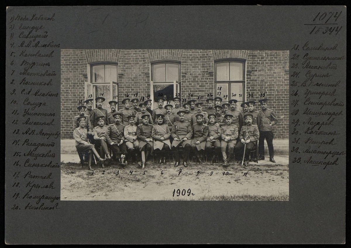 Группа офицеров. Неизвестный фотограф. 1909 г. Книжная коллекция 12-го гренадерского Астраханского полка. Исторический музей. #РИА