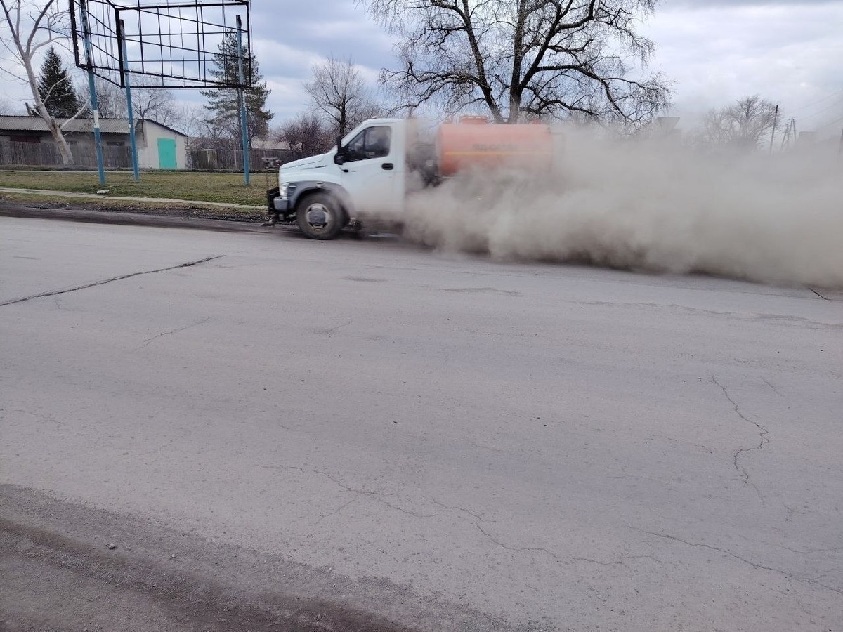 В Шахтёрске провели очистку проезжей части от пыли и грязи на улицах Кирова и Овощной
